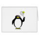 Ein Cartoon Penguin mit einem Tennisschläger und einem Tennisball