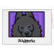 Niedlicher kawaii Schipperke-Cartoon, innerhalb eines großen lila Quadrats. Unter die Illustration ist der Name der Hundezucht. Einzigartige und reizend Schipperkegeschenke für Haustier-Eigentümer.