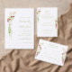 The invitation is adorned with a stunning cascading floral bouquet design, featuring watercolor illustrations of white anthurium, orchids and amaranthus. These delicate blooms, rendered in moss green and rich merlot hues, create a harmonious and inviting aesthetic that evokes the natural beauty of a flourishing garden.
