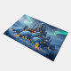 Welcome doormat of an impressive castle made of igloos and stone, in a winter landscape of snow and pine trees. Magical aurora lights play in the evenfall sky, bathing the mountains and valley in a surreal atmosphere of heavenly colors. Amidst the misty strands of cold and snow, the stronghold castle known as "Winter Fire" stands. It is the last bastion of civilization and warmth before a vast expanse of frozen tundras, snowcapped mountains, and haunted forests open themselves to the wanderlust of the willing traveler... This artwork was created with ImageFX and upscaled with Leonardo.ai. Additional editing was done offline by me.