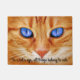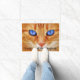 Doormat mit dem Bild einer goldenen Katze mit blauen Augen und einem Zitat: "Im Auge einer Katze gehören alle Dinge Katzen."