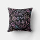 Halloween-Kopfkissen mit einem trendigen rosa und lila Muster auf schwarzem Hintergrund mit Katzen, Kürbissen, Jack O'Lanterns, Fledermäusen und mehr Design bedruckt auf beiden Seiten.