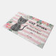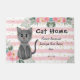Funny Cat Zitat, um alle in Ihrem Haus willkommen zu heißen. Im Hintergrund gibt es pastellrosa und weiße Streifen, zarte Blume und einen goldenen Glitzer.