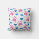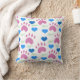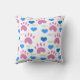 Do you like cats? This cute pillow features a pattern of pink cat paws, blue hearts and the word meow in green.