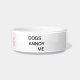 Diese Katzenschüssel ist ein hochnäsiges Stückchen. Die Mitteilung ist, "Hunde stören mich". Die Gesichter der Katze bestehen kleine Gesichter, genannt, MINIFACES. Sie wurden vom Illustrator, NICHOLAS, für eine Gruppe humorvolle MINIFACES Grafiken entstanden. Diese Grafiken sind auf Produkten zu Hunderten von Zazzle verfügbar. Schauen Sie nah, um die kleinen Gesichter zu sehen, die alle MINIFACES Entwürfe bilden.
