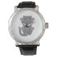 Uhr, Vintage Männeruhr mit schwarzem Lederarmband
