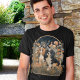 Vintag-inspiriertes Design mit zwei eleganten Cavalier King Charles Spaniels - einem Blenheim und einem Tricolor - in einem üppigen Garten im Stil eines antiken Wandteppichs oder der Arbeit von William Morris.