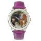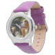 Uhr, Kinderuhr aus Edelstahluhr mit lila Lederarmband