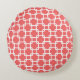 Einfach und elegant, fügen Sie Ihrem Sofa, Stuhl oder Bett eine besondere Farbe und Design hinzu, mit diesen Cayenne Square Link Pattern Round Pillows. Großartige Geschenke für neue Zuhause, Geburtstage und Feiertage. Green Square Link Pattern auf einer Seite und solide grün auf der anderen Seite.