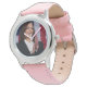 Kinderuhr aus Edelstahl mit rosa Lederarmband