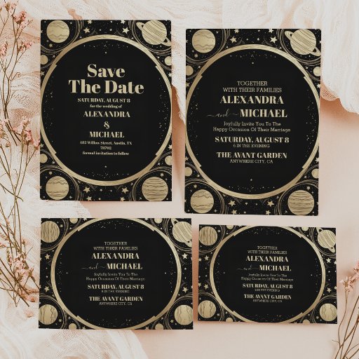 Elegant Celestial Black Gold Crescent Moon WeddingDesignt von Andreea Eremia