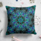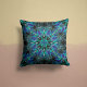 Dieses kissenförmige Kissen mit leuchtendem Set aus Blues und Grüntönen vor einem dramatischen schwarzen Hintergrund. Ein modernes Statement für schicke oder böhmische Innenräume.