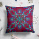 Ein Mandalamuster der Sternexplosion glänzt in Blau-, aquamarin- und Grüntönen vor einem reichen magentafarbenen Hintergrund und schafft so ein gewagtes Herzstück für jeden Sitzbereich.