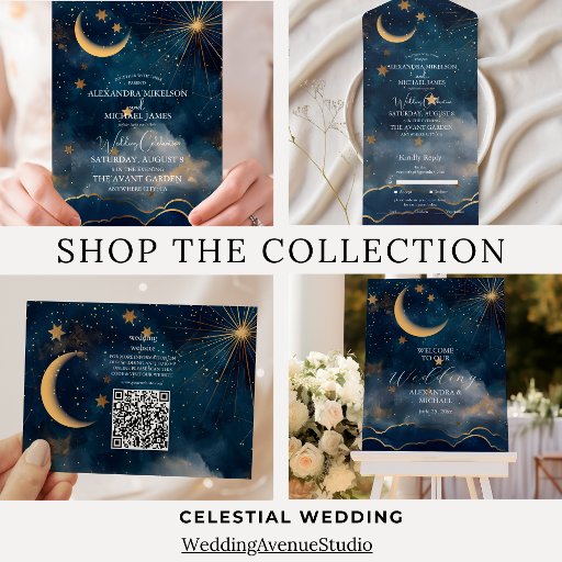 Embrace the enchanting allure of the cosmos with our Celestial Midnight Blue Stars Moon Wedding All-in-One Invitation. Designed to capture the celestial beauty of the night sky, this exquisite invitation sets the perfect tone for your celestial-themed wedding celebration.