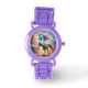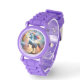 Uhr, Kinderuhr aus Edelstahluhr mit lila Lederarmband