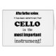 Nach einer weiteren Überprüfung wurde festgestellt, dass Cello das wichtigste Instrument ist! Sie brauchen kein sofortiges Replay, um feststellen zu können, dass Ihr wichtigstes Instrument ist! Andere mögen denken, dass ihre ist, oder dass alle musikalischen Instrumente gleich sind, aber du weißt die Wahrheit!