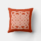 Kopfkissen in einem traditionellen keltischen Muster, basierend auf dem Knoten eines Seglers, aus zwei miteinander verbundenen Seilen, die das Zusammenfügen des individuellen Lebens in einem symbolisieren. Das mittlere orangefarbene Muster ist in Weiß auf einem orangefarbenen Hintergrund mit tiefer Mandarine dargestellt
