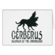 Cerberus ist der drei-köpfige Wachhund, der den Eingang zur unteren Welt schützt, das Hades. Es ist ein Kind des riesigen Typhon und des Echidna, ein ungeheueres Geschöpf selbst und ist halbe Frau und halbe Schlange.