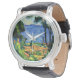 Uhr, Vintage Männeruhr mit schwarzem Lederarmband