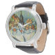 Uhr, Vintage Männeruhr mit schwarzem Lederarmband