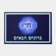 Ein blaues Fraktal mit einem Stern von David und "Chai", hebräisch für das Leben; zusammen mit hebräischem Text mit "B'ruchim Haba'im" (ב ר ו כ י ם ה ב - willkommen).
