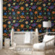 Chalk-zeichn des Sonnensystems auf schwarzer Brett Tapete