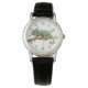 Klassische Damenuhr mit schwarzen Lederarmband