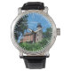 Uhr, Vintage Männeruhr mit schwarzem Lederarmband