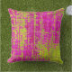 Ein reich strukturiertes abstrakte in den Farbtönen Chartreuse, Olivgrün, Himbeere, Rosa und Fuchsia macht dies zu einem auffälligen Kissen.