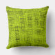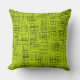 Dieses moderne Kissen zeichnet sich durch ein abstraktes Muster auf einem chartreusen Hintergrund aus.
