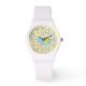 Die gelbe Gummifotze schwebt unter den Blasen in einer Badewanne, gewartet für sein nächstes Abenteuer. Diese Uhr ist in verschiedenen Größen, Farben und Stilen erhältlich, auch in Größen für Kinder und Erwachsene.