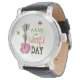 Uhr, Vintage Männeruhr mit schwarzem Lederarmband