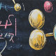 Black Chalkboard Chemical Equations & Atoms für die Dekoration von Schulwänden. Lösungen für die Inneneinrichtung.