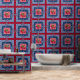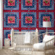 Cherries Denim und Gingham Karo Hütte Quilt Tapete