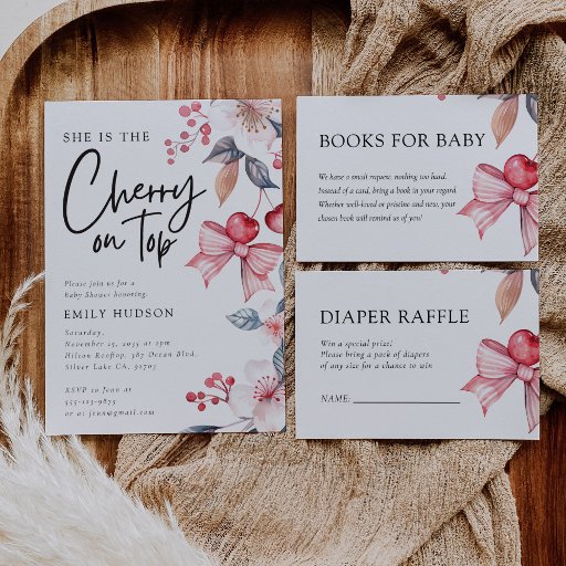 Cherry auf der Top Pink Bow Coquette Baby Dusche Einladung
