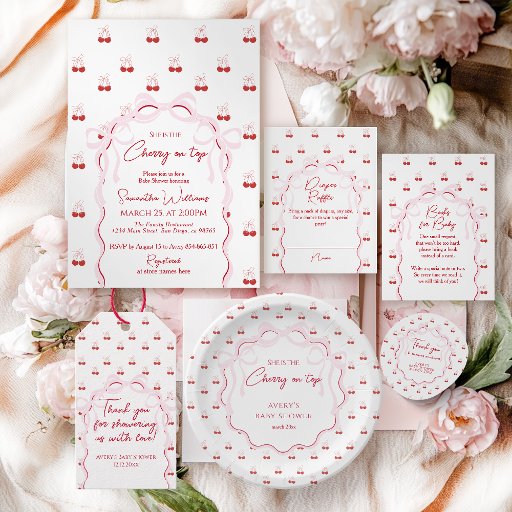 Cherry on Top Pink Bow Red Baby Girl ShowerDesignt von Katerina Shramenko