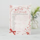 Mit diesem Cherry on Top Baby Word Scramble Game mit einem weichen rosa Bogen, charmanten Aquarellkirschen und einer Touch von coquette Vintagem Flair können Sie Ihre Babydusche mit einer unterhaltsamen Drehung versehen. Die Gäste werden Lieben beim Rennen um das Thema Babys austragen und dabei das elegante, rosa-blaue Design, die zauberhaften Beeren und die Schrift-Typografie genießen. Dieses Spiel ist perfekt für die Sommerduschen und verbindet Spaß, rustikalen Charme mit minimalistischer Ästhetik, ideal für Gender-neutral oder Mädchen-Themes. Eine süße Art, die Gäste zu unterhalten und Ihre Baby-Dusche Einladungen und Dekoration zu ergänzen.