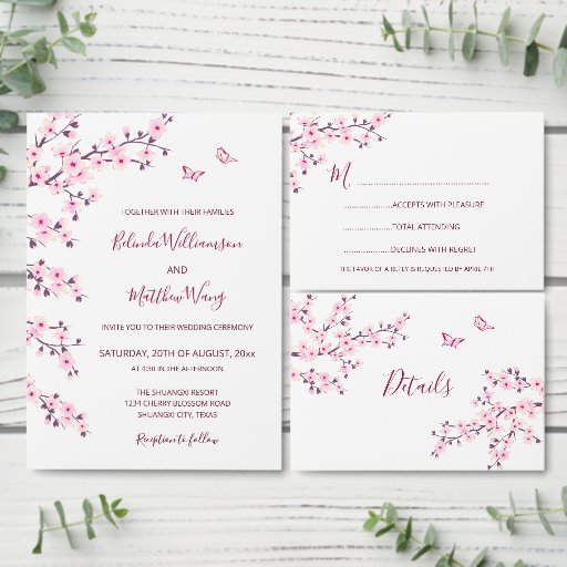 Cherry Blossom Pink White Wedding Details Begleitkarte