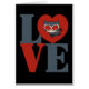 Karo aus Chibi Catwoman in einem roten Herz, das das "O" in diesem "LIEBE" gestapelten Logo darstellt.