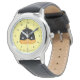 Uhr, Vintage Männeruhr mit schwarzem Lederarmband