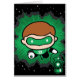 Karo aus Chibi Green Lantern, während er durch eine Träne im Raum fliegt und seine grüne Laterne hält.