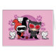 Karo Chibi Catwoman mit drei weißen Kätzchen mit Chibi Harley Quinn wartete ungeduldig neben ihr.