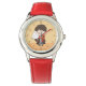 Kinderuhr aus Edelstahl mit rotem Lederarmband