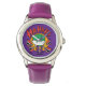 Uhr, Kinderuhr aus Edelstahluhr mit lila Lederarmband