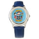 Kinderuhr aus Edelstahl mit blauem Lederarmband