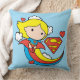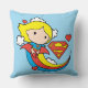 Karo aus Chibi Supergirl schafft einen Regenbogen, während sie mit ihrem S-Schild Logo und Herz durch den Himmel fliegt.