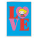 Karo aus Chibi Supergirl in einem Ping-Herz, das das "O" in diesem "LIEBE" gestapelten Logo darstellt.
