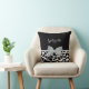 Ein elegantes, schwarz-weißes Giraffenkissen mit einem eleganten silbergrauen Band, das in einen femininen Bogen gebunden ist. Personalisieren Sie dieses mädchenhafte Tierdesign, indem Sie Ihren Namen hinzufügen. Flachbild, nicht eigentlicher Bogen.