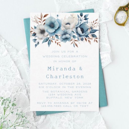Ich hoffe, Sie genießen diese staubblauen und weißen Blume aus blauem und weißem Wasser. Entsprechende Einladungen und Hochzeitsvorräte stehen in dieser Kollektion zur Verfügung.