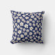 Chic Boho Daisies Dark Blue Pattern Throw Kissen